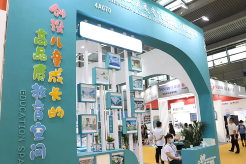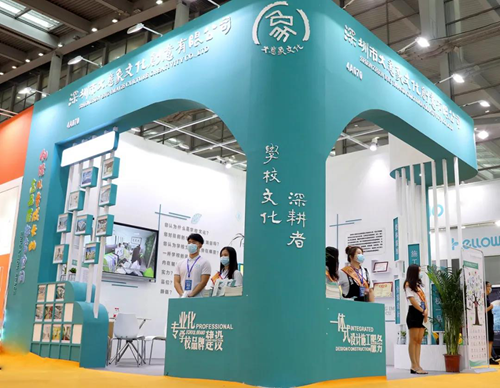 此次展會,大意象不僅為大家帶來了眾多全新的校園文化設計精彩案例,涵蓋幼兒園、小學、中學、K12教育等不同屬性,幼兒園文化建設與提升尤為突出。更為吸引眼球的是,今年的展館設計可謂頗具匠心。清新、爽朗的澄湖綠,讓人如沐夏風、心情舒暢;層巒疊翠的假山造型,內涵具象,意境悠遠;自然垂墜的藝術吊頂裝飾與創意拼接的立體展示裝置,讓人耳目一新、眼前一亮。整個展館從細節到溫度,盡顯大意象人非凡的創意與高雅的品味,吸引了眾多嘉賓的圍觀與品鑒。