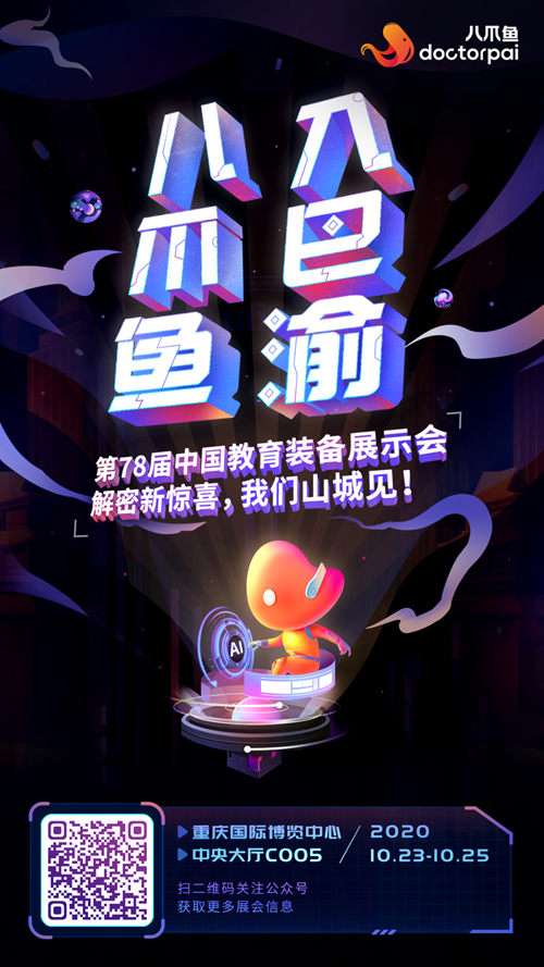 10月23日,第78屆中國(guó)教育裝備展示會(huì)即將在山城重慶拉開(kāi)帷幕,本屆教育展由中國(guó)教育裝備行業(yè)協(xié)會(huì)主辦,重慶市教育委員會(huì)、重慶市商務(wù)委員會(huì)承辦。八爪魚(yú)教育將在本次展會(huì)為大家?guī)?lái)創(chuàng)新教育的最新成果,展示我們這一年來(lái)的變化。