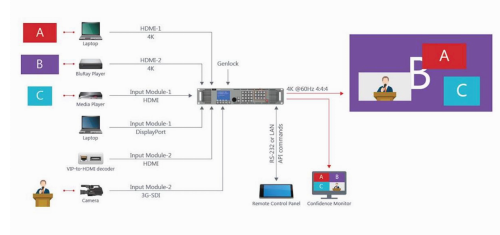 它具有超低延時(shí),以單像素為基準(zhǔn),精確調(diào)節(jié),模組化設(shè),支持4K 50/60HZ 4:4:4影像輸出。同時(shí)還具有四圖層畫(huà)面,各圖層可任意切換大小位置,額外還擁有一個(gè)靜態(tài)背景圖層,真正無(wú)縫切換和漸進(jìn)漸出。