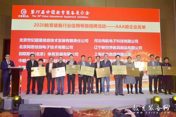 此外,本次活動還對今年首次參加教育裝備企業信用等級評價并獲得AAA信用等級的企業現場授予了信用等級牌匾,并向所有今年參評企業發放了信用等級證書。