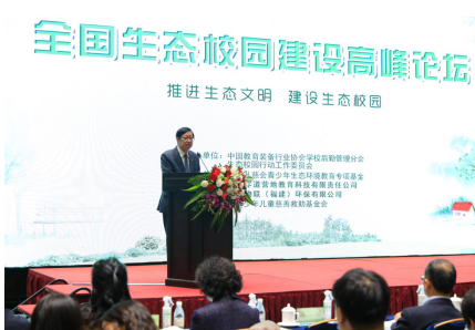 2020年10月22日,由中國教育裝備行業協會學校后勤裝備管理分會、生態校園行動工作委員會共同主辦,中華兒慈會青少年生態環境教育專項基金、北京零道營地教育科技有限責任公司、愛家物聯(福建)環保有限公司聯合承辦的“全國生態校園建設高峰論壇”在重慶悅來國際會議中心舉行。教育部關心下一代工作委員會常務副主任、中國教育裝備行業協會會長王富,中華少年兒童慈善救助基金會理事長王林,北京市高教學會會長、北京市教委原主任線聯平,重慶教育信息技術與裝備中心主任陳瑜,中小學生態校園行動工作委員會常務副主任劉子玉,中華兒慈會青少年生態環境教育專項基金主任李鋼等領導和嘉賓出席會議,會議由中國教育裝備行業協會常務副會長李興植主持。來自北京、河北、天津、湖南、遼寧、四川等12個省市的教育裝備部門的領導、縣市教育裝備站主任、中小學校長、教育專家學者等260余人參加會議。