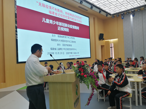 10月29日下午,“克服疫情不利影響,持續推進近視防控”福建省近視防控宣傳月巡回宣講活動在邵武市第二實驗小學舉行。福建醫科大學醫學技術與工程學院副院長、博士生導師、福建省兒童青少年近視防控研究中心主任、全國兒童青少年近視防控專家宣講團成員胡建民主任醫師一行作題為《保護視力遠離近視》的專題講座,并現場為大家答疑解惑。
