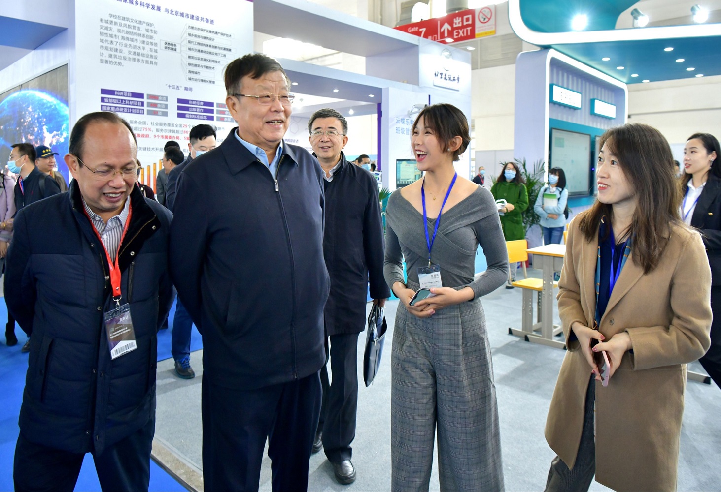 作為本屆城博會智慧教育唯一參展企業,廣州云蝶科技有限公司與北京師范大學未來教育高精尖創新中心聯合參展,帶來以“數據化”為特征的高水平的教育治理理念與成果。期間,住房和城鄉建設部副部長黃艷,住房和城鄉建設部總工程師李如生分別在展會首日和第二日到訪云蝶科技展區,仔細聽取相關情況匯報,云蝶科技副總裁劉麗麗博士等陪同參觀。