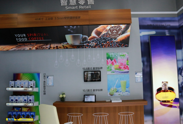 現場智慧零售展區,一組色彩亮麗的3*1拼接墻吸引了眾多過往的用戶。飛利浦工作人員介紹,該系統采用46D9U超窄拼接墻,擁有46寸4K級工業液晶面板,分辨率為3840×2160,并可根據場景及用途,隨意搭配拼接屏幕的數量,做到靈活拼接、隨心而選。