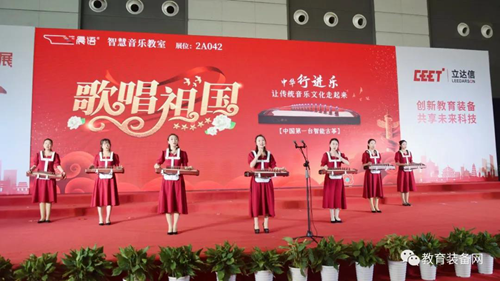 智慧教學(xué)主機(jī)、晨語書院音樂教學(xué)軟件與智能古箏交互下,老師們彈奏數(shù)首動(dòng)聽歌曲,吸引無數(shù)觀眾駐足聆聽,場面反響十分熱烈。