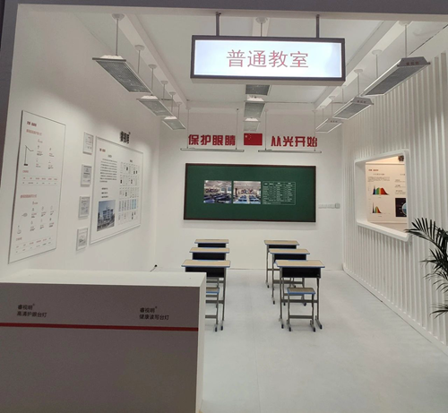 本屆展會,拓享睿視明帶來的全新幼兒園照明解決方案,采用的是幼兒專用護目面板燈,可有效控制眩光,能更好呵護幼兒尚未發育完全的眼球健康。此次展出的幼兒護目燈具組由大圓、小圓、及橢圓三個造型拼湊而成,造型新穎獨特、富有意趣,引得現場觀眾紛紛駐足。