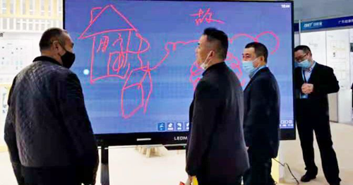 除三大展區外,走廊LED健康教室燈睿視明臺燈展示區及錄播區110寸超大LED高端會議一體機,也是人潮關注的重點。