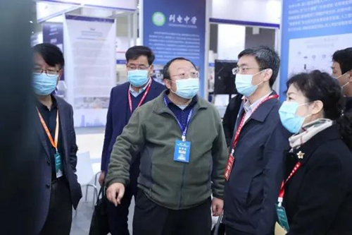 圖三:陜西省委教育工作委員會冀映秋委員參觀高新一中展位