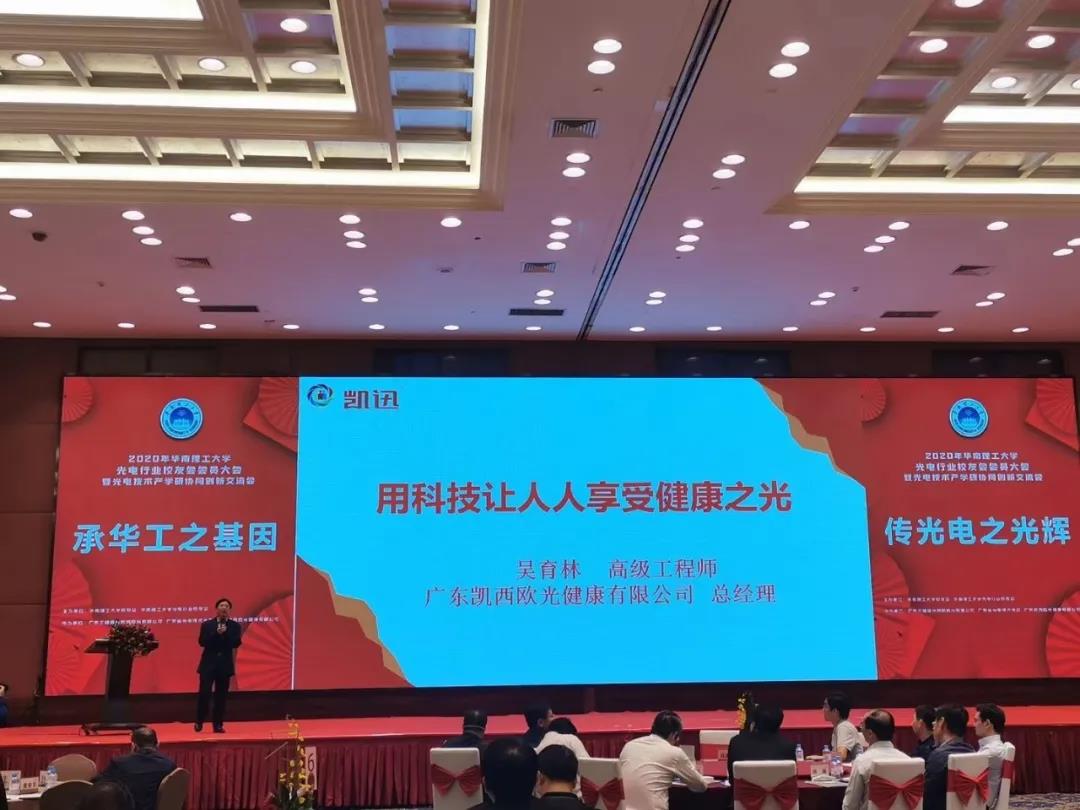 11月15日,廣州東方賓館,“2020年華南理工大學光電行業校友會會員大會暨光電技術產學研協同創新交流會”隆重舉行。會上,來自光電行業各個領域的優秀企業家紛紛闡述了各自的行業分析與思考。我司總經理吳育林先生也在會上進行了《用科技讓人人享受健康之光》的主題演講,進一步闡明了光健康產業的發展路徑,受到現場眾多來賓的高度認可,也得到廣東省光電技術協會和華南理工大學光電行業校友會的積極支持。因此,在季華實驗室的指導和支持下,我司與廣東省光電技術協會和華南理工大學光電行業校友會聯合成立“廣東省光健康產業聯盟籌備委員會”也水到渠成,在現場進行正式簽約。