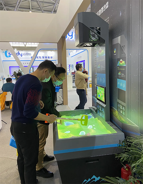 現(xiàn)場(chǎng)展出了多媒體超半球互動(dòng)球幕投影演示儀、AR地理沙盤(pán)、數(shù)字立體地形、數(shù)字模型、乾輿經(jīng)緯地理教學(xué)系統(tǒng)、九州春秋歷史教學(xué)系統(tǒng)、數(shù)字歷史沿革系統(tǒng)、交互式3D多媒體教學(xué)系統(tǒng)等。有首次亮相的新品,也不乏多年來(lái)廣受好評(píng)的明星產(chǎn)品,跟著我們一起來(lái)看看吧~