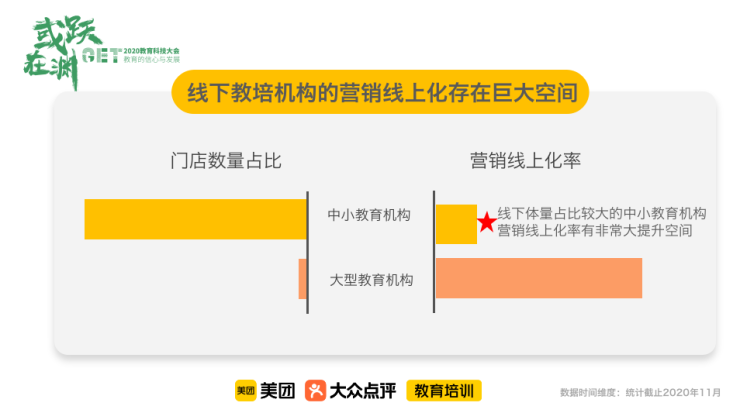 11月24日,在“或躍在淵:教育的信心與發展”芥末堆GET2020教育科技大會上,美團教育及親子業務負責人張文月帶來了《數字化浪潮下線下教培機構如何“營”難而上》的主題分享。