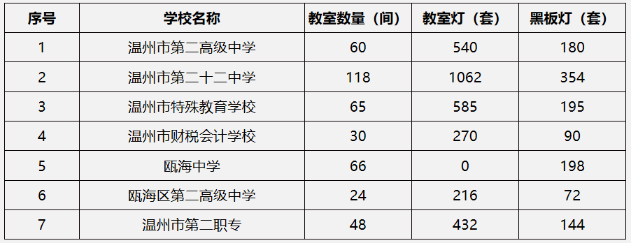 其他如浙江省一級重點中學甌海中學、甌海二高、溫州市特殊教育學校、溫州市財稅會計學校、溫州市第二職專等總計7所學校,400余間教室參與了此次項目改造,其中近5000Pcs驅動控制電源全部使用萊福德教室照明專用電源。