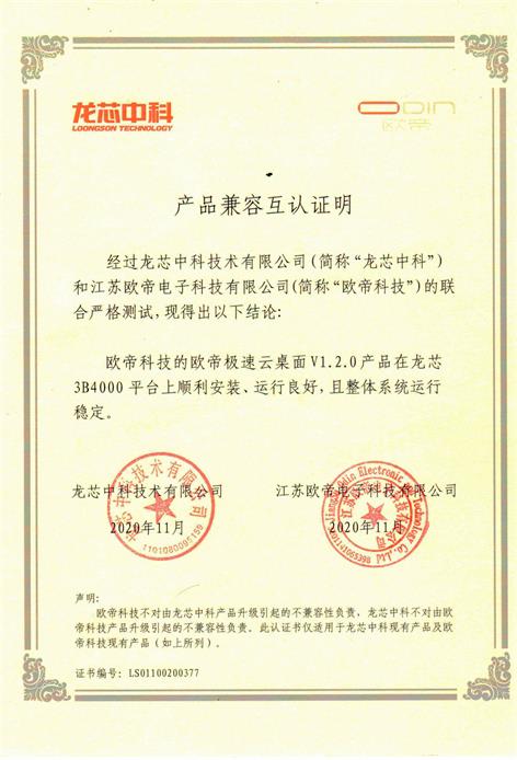 近日,歐帝極速云桌面V1.2.0與龍芯3B4000平臺、統信桌面操作系統V20完成互認證。基于服務器虛擬化技術與音視頻流化技術的極速云在推動教育信息化國產化上又邁進一步。