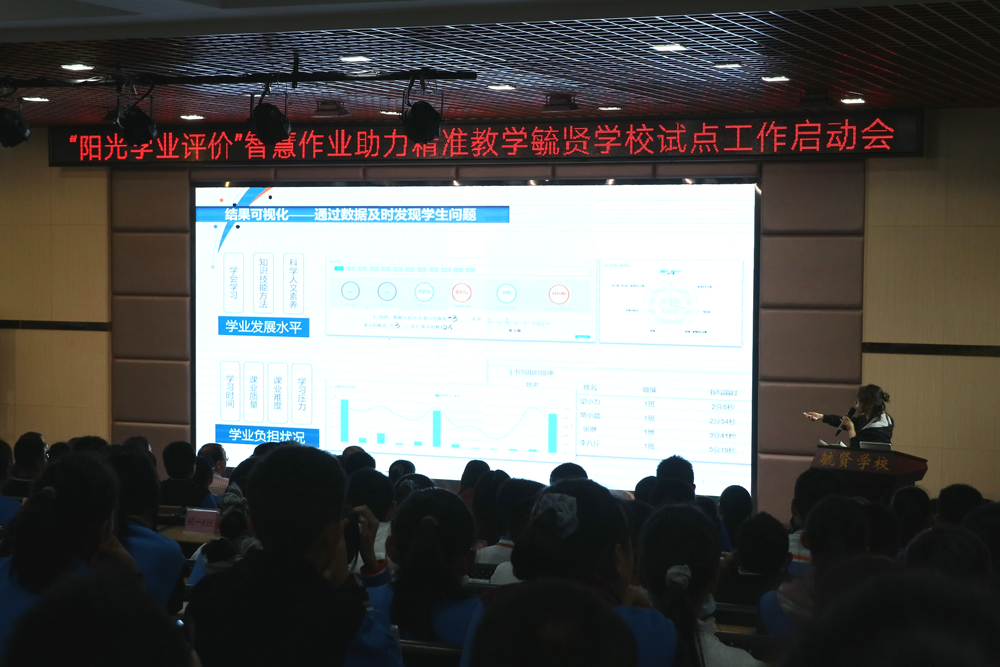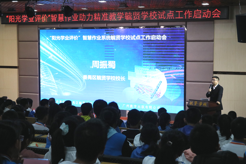 12月7日,番禺區毓賢學校“陽光學業評價”智慧作業助力精準教學試點工作啟動會順利召開,廣州市教研院德育中心主任蔣亞輝,廣州市教研院教研員侯煜群,番禺區毓賢學校校長周振蜀,廣州數字出版有限公司董事長黃婷,云蝶科技助理總裁余瀾博士以及毓賢學校初中部七年級全體學生及數學科任教老師出席了此次啟動會。