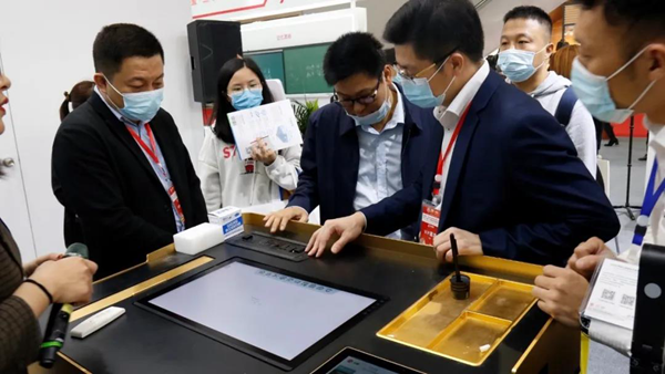 本屆展會,文香展示了全新一代智慧黑板。智慧黑板將傳統黑板與現代教育融為一體,可通過五指熄屏功能,在智慧黑板與傳統黑板之間進行切換,方便教師在傳統教學與現代化教學之間進行無縫對接。同時,文香展示了智能記憶黑板,旨在不改變老師上課書寫習慣的基礎上,解決學校上課期間,板書留存不便,后排看不清楚板書等問題。設備支持將板書內容實時同步到教學電子設備,或投放到大屏或投影儀上,學生也可根據自己情況,實時獲得板書,一鍵保存,自動生成文字筆記。多形態功能的現場展示,讓觀眾能夠直觀的體驗不同的教學工具應用。
