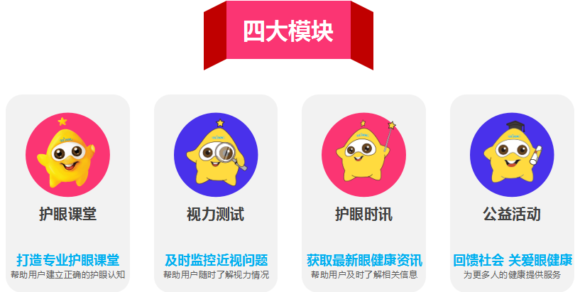 為了更好的深化科普效果,讓護(hù)眼科普從學(xué)校延伸到家庭,閃亮品牌專門研發(fā)線上護(hù)眼平臺“閃亮眼護(hù)理中心”小程序,其包含護(hù)眼課堂、視力測試、護(hù)眼時訊、公益活動等四大模塊,在線上通過科普+互動的形式,讓孩子和家長都能夠參與到護(hù)眼科普的互動中,這也是新時代科技護(hù)眼的創(chuàng)新體現(xiàn)。