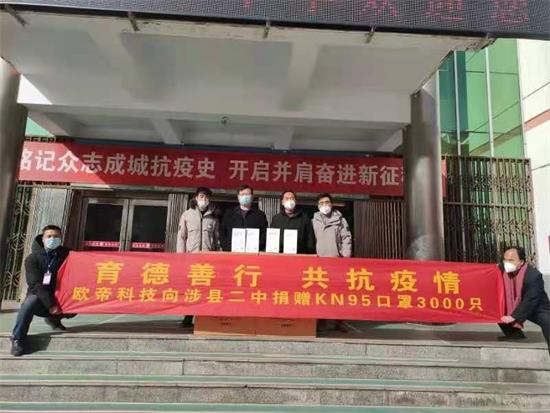 歐帝科技向邯鄲涉縣二中捐贈KN95口罩3000只。