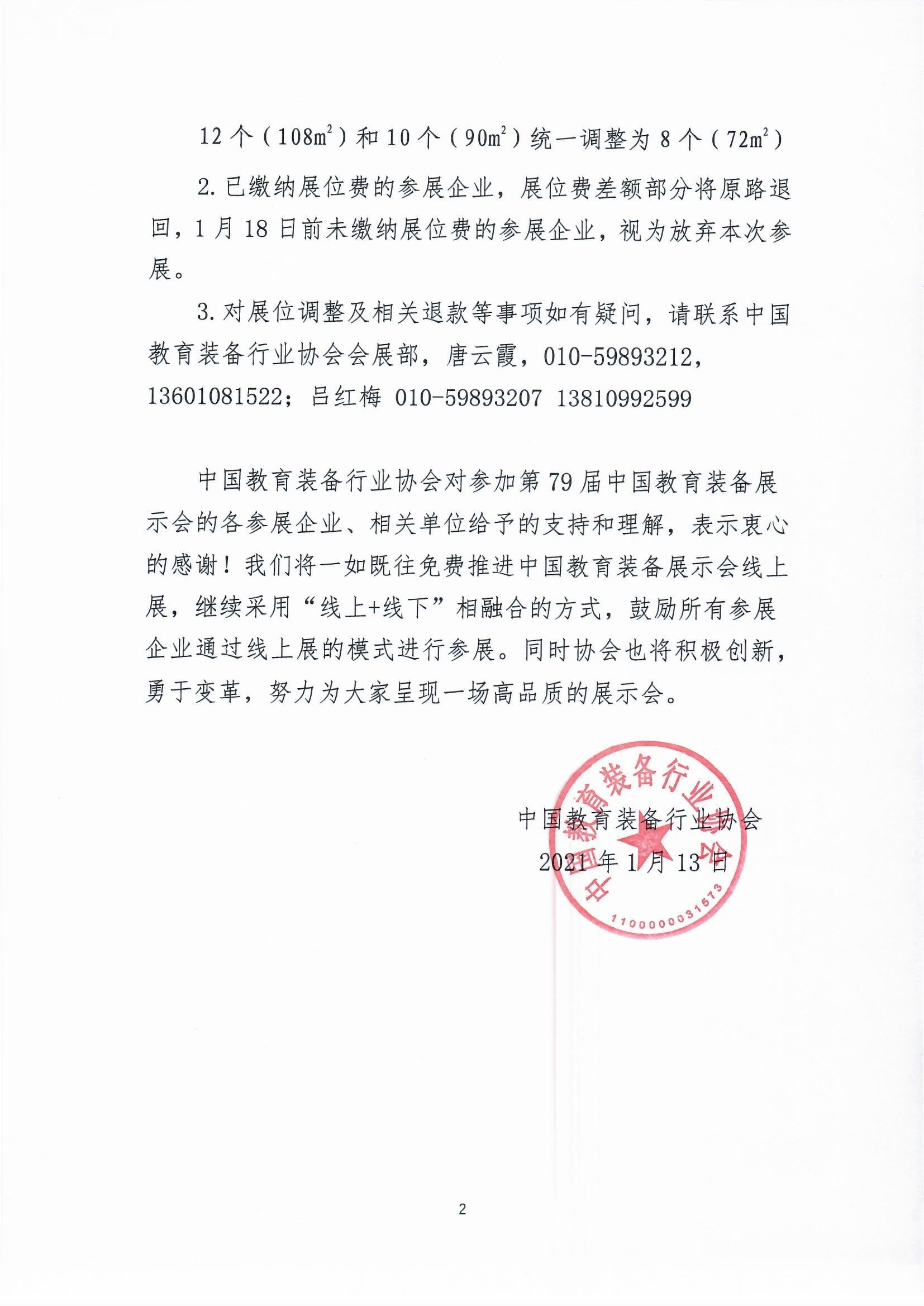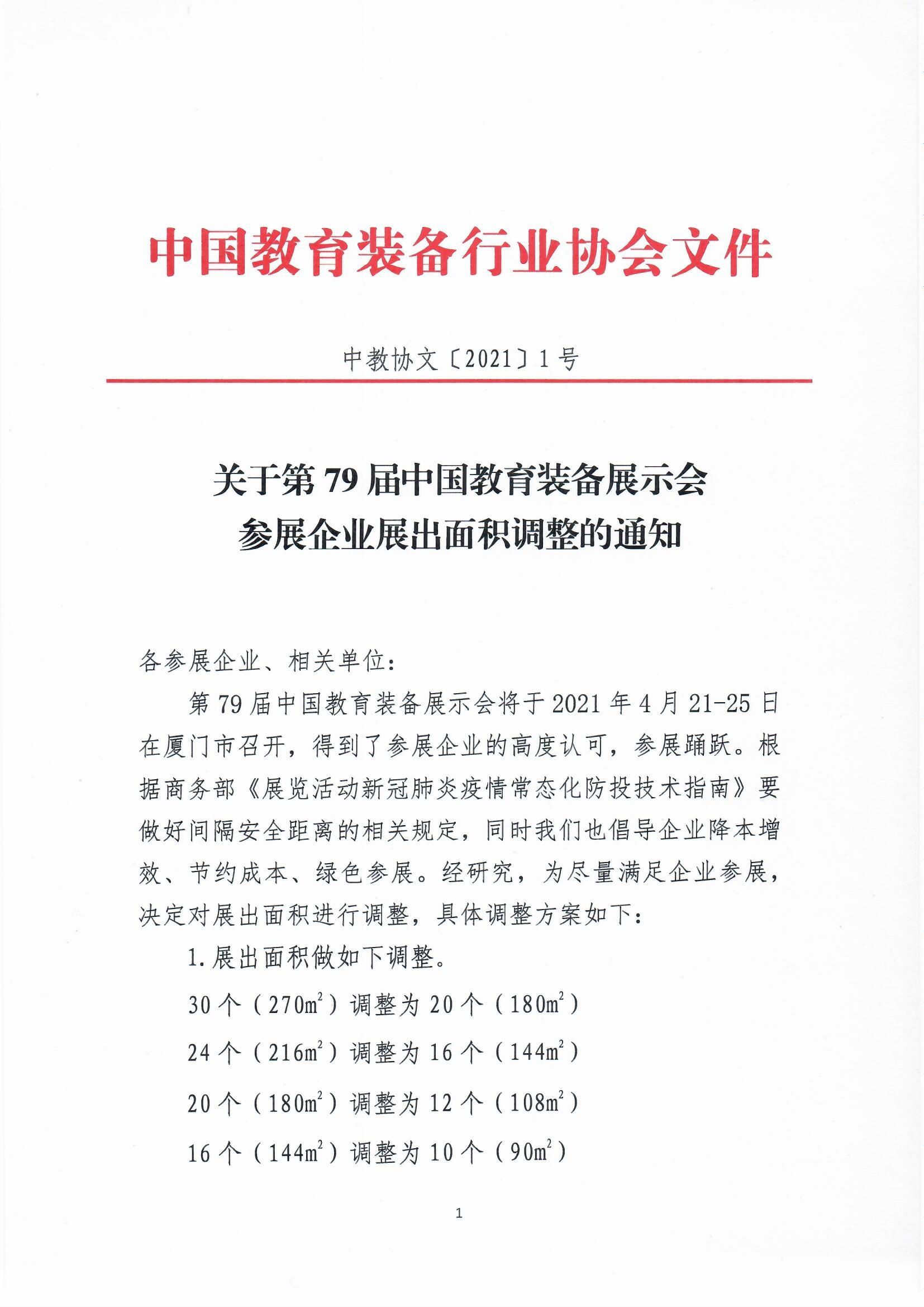 中國教育裝備行業協會關于第79屆中國教育裝備展示會參展企業展出面積調整的通知
