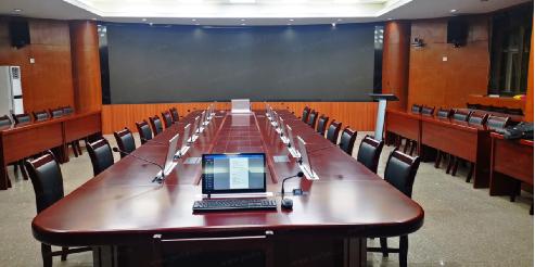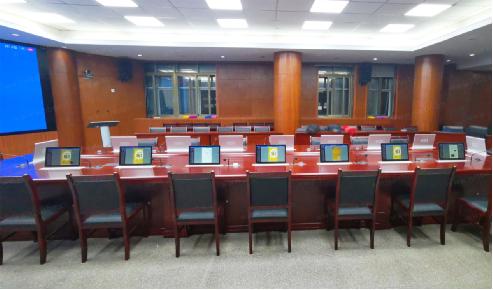 按照會(huì)議室布局,配置了16點(diǎn)位的無(wú)紙化升降一體終端,以嵌入式方式安裝在會(huì)議桌面,令會(huì)議室整體整潔、美觀。系統(tǒng)平臺(tái)采用的是JUSBE自主研發(fā)并擁有著作權(quán)的軟件系統(tǒng),集合了豐富強(qiáng)大的會(huì)議服務(wù)功能,只需觸控屏幕即可快速幫助參會(huì)者輕松掌握會(huì)議信息,高效完成會(huì)議內(nèi)容。