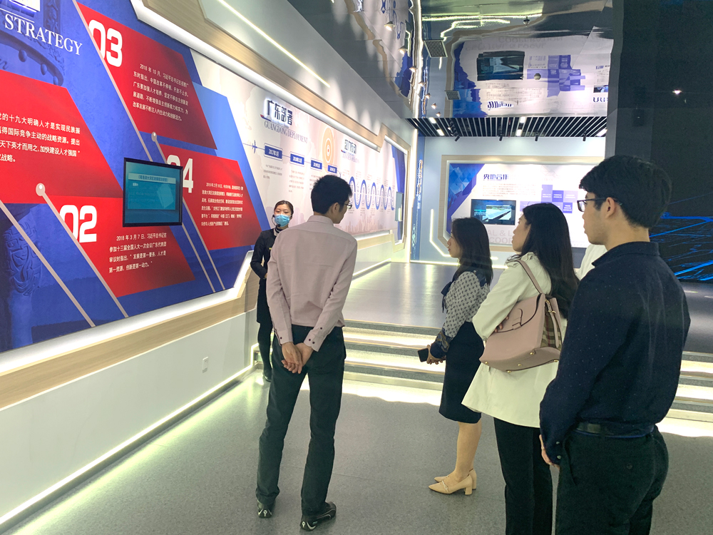 在江門市濱江管理公司負責人的陪同下,碧桂園江中區域及云蝶科技代表深入走訪江門人才島項目內已落成的科創中心、潮頭中央公園、科技產業園、智慧城市展示中心等配套設施,詳細了解相關項目的建設背景與合作情況。