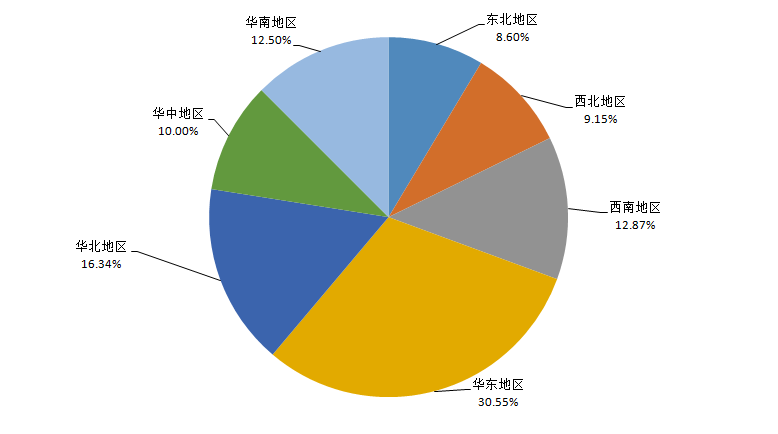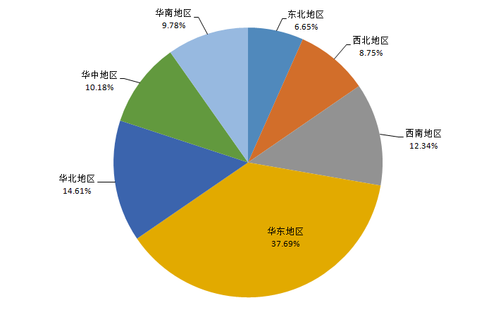 按照國家地理區(qū)域劃分,即東北地區(qū)、西北地區(qū)、西南地區(qū)、華東地區(qū)、華北地區(qū)、華中地區(qū)、華南地區(qū)(收集數(shù)據(jù)中不含中國港澳臺地區(qū))。