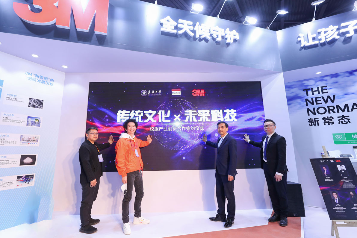 當天在ISUE展會期間人潮涌動,氣氛熱烈。3M簡約大氣的白色展位之上,正舉行著一場“傳統文化×未來科技”校服產業創新合作簽約儀式。現場東華大學服裝學院副教授朱達輝,成都市藍鳥服裝有限公司董事長曾繼紅,全國工商聯紡織服裝業商會秘書長朱鈞與3M消費品事業部服飾紡織業務大中華區總經理向亮分別為活動致辭,并共同啟動東華大學、藍鳥、3M“傳統文化×未來科技”校服產業創新合作。3M總經理向亮表示:“3M將持續致力于推動校服行業的發展與進步,讓更多的學生可以穿上高品質、安全環保的校服,并且讓可持續發展理念在學生身上也得到傳承和發揚,為校服行業帶來了新的實用主義視角,喚醒行業的環境責任意識。”