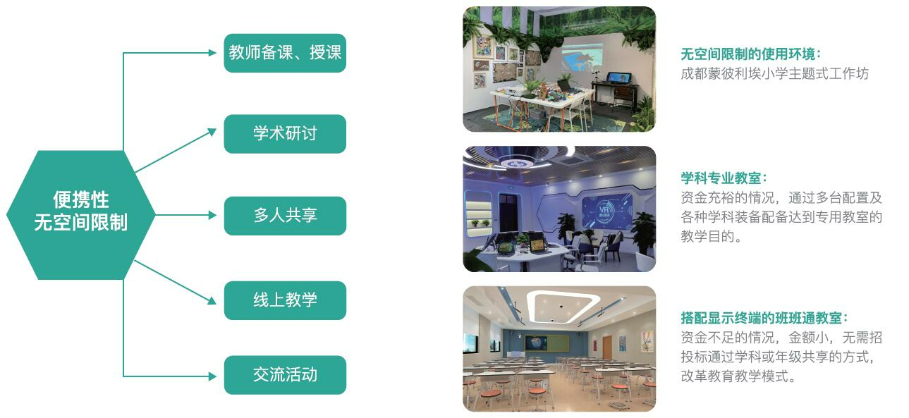 雖然VR憑借其獨(dú)特優(yōu)勢(shì),賦能教育,將虛擬現(xiàn)實(shí)技術(shù)與教學(xué)進(jìn)行了充分融合,突破了傳統(tǒng)教學(xué)模式,實(shí)現(xiàn)了情境式教學(xué),讓學(xué)生沉浸在可交互的虛擬學(xué)習(xí)場(chǎng)景中,體會(huì)與知識(shí)進(jìn)行對(duì)話的樂(lè)趣。但眾所周知,受技術(shù)限制,VR并不能實(shí)現(xiàn)隨時(shí)隨地置身教育。