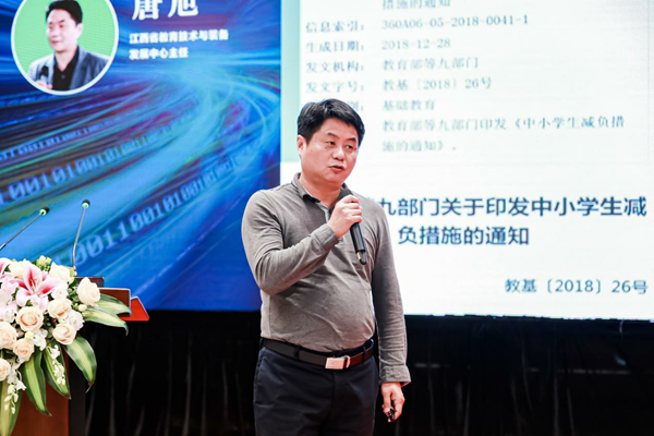 江西省現(xiàn)代教育技術(shù)與裝備發(fā)展中心主任唐旭做了題為《“智慧作業(yè)”——作業(yè)數(shù)據(jù)驅(qū)動(dòng)下的大規(guī)模因材施教探索》的主題報(bào)告,詳細(xì)介紹了江西省中小學(xué)全面推廣使用智慧作業(yè)的情況。智慧作業(yè)不改變學(xué)生使用練習(xí)冊(cè)作答的習(xí)慣,通過(guò)讓老師使用智能筆批改作業(yè),再由大數(shù)據(jù)分析學(xué)生的學(xué)習(xí)情況,主動(dòng)推送錯(cuò)題微課,有利于實(shí)現(xiàn)個(gè)性化教學(xué)、促進(jìn)教育均衡發(fā)展、推動(dòng)減負(fù)政策落地等。