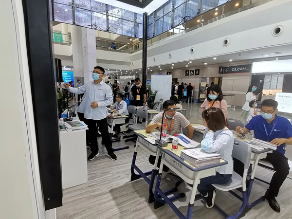 此外還設(shè)置人臉識(shí)別簽到功能,幫助監(jiān)考人員高效驗(yàn)證考生身份,維護(hù)考場(chǎng)公平公正,許多參會(huì)者主動(dòng)咨詢探討實(shí)驗(yàn)室系統(tǒng)的功能與操作細(xì)節(jié)。