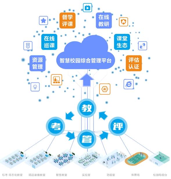 銳取“三個課堂”應用方案,以“ISET教學能力培養模型”為中心,以互動錄播和智慧校園綜合管理平臺為技術支撐,通過精品錄播教室、常態化錄播教室、輕錄播教室、實驗室、體育場等教學場景建設,對課堂上的每一幀精彩瞬間進行全自動高清記錄和直播,協同智慧管理平臺,有效整合課程、名師、課堂資源,實現課堂的遠距離互動、異地直播分享及校本資源積累。