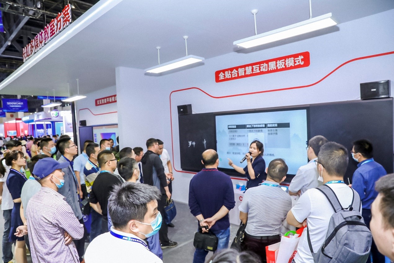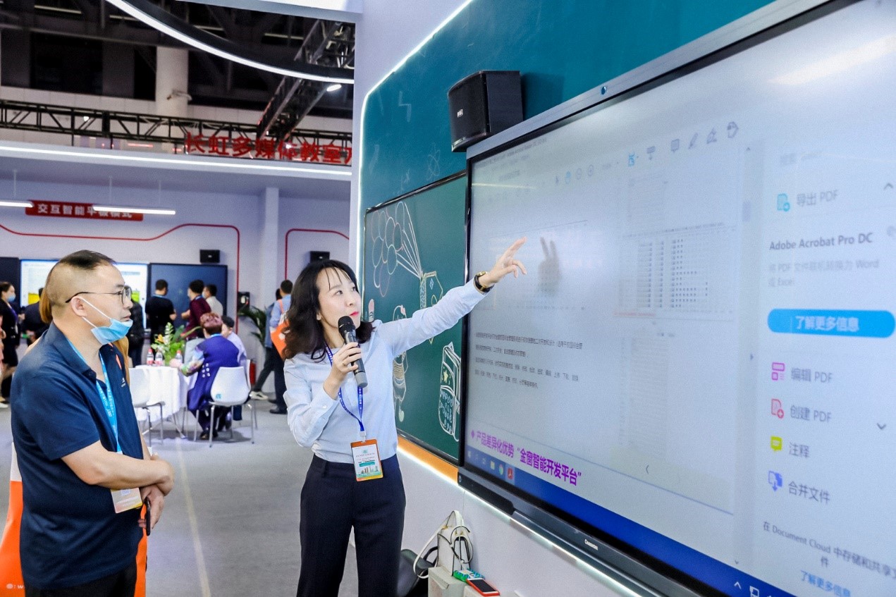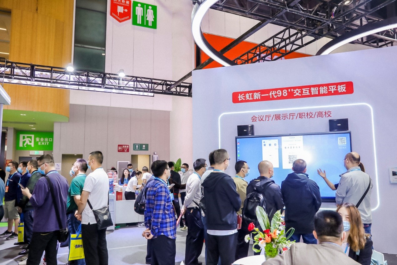 展會(huì)上,長虹教育科技基于端云一體,完美呈現(xiàn)了智能化校園解決方案、多媒體教室(全貼合智慧互動(dòng)黑板模式、交互智能平板模式、激光投影模式)、數(shù)字校園管理平臺(tái)、云多媒體教室、智慧黨建、四川云教、全新一代98吋交互智能平板等多款新產(chǎn)品方案于一體的新建學(xué)校整體解決方案。