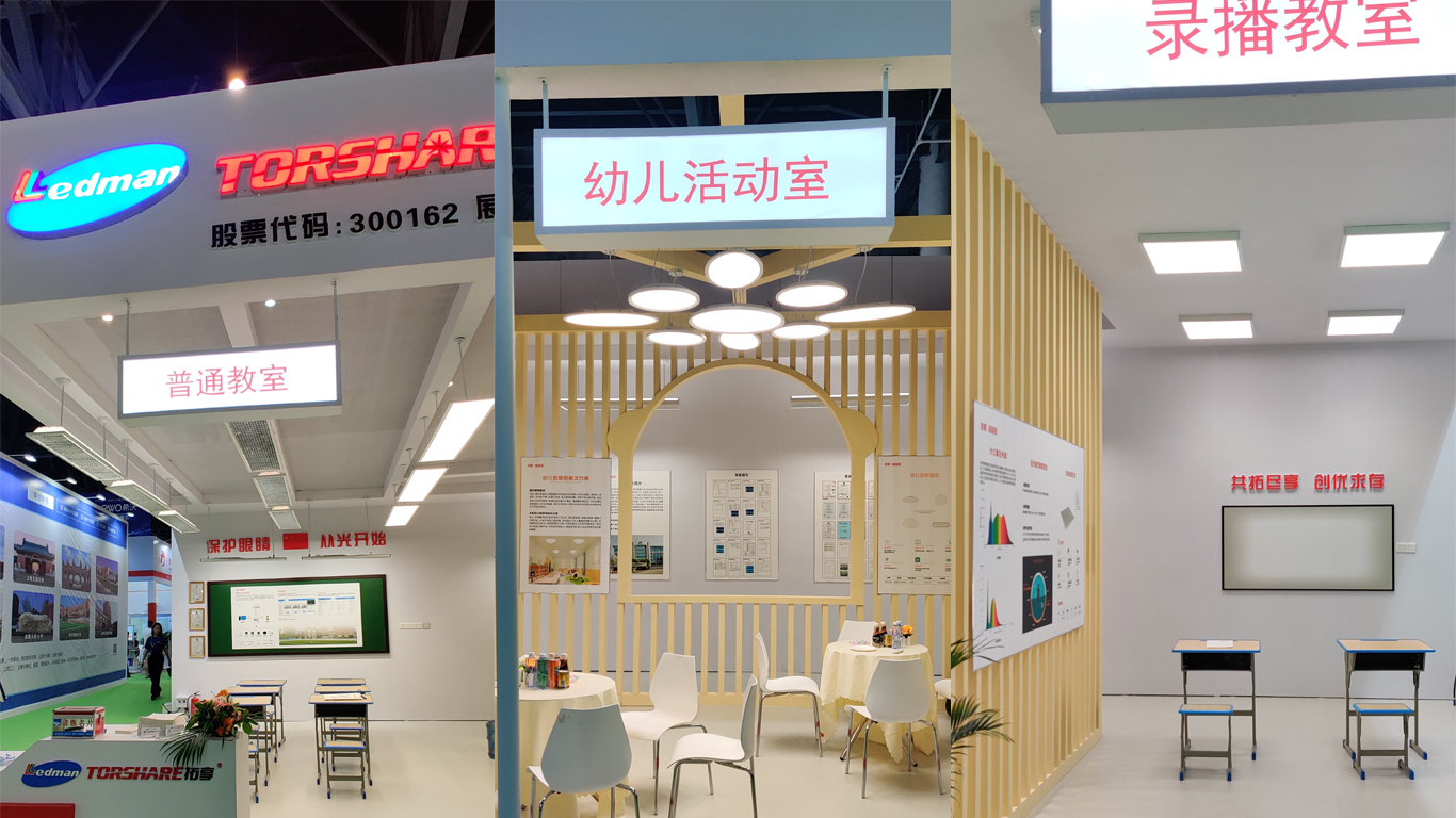 本屆博覽會上,拓享睿視明帶來的全光譜照明解決方案,涵蓋各級各類院校所需的健康照明方案,包含中小學校的普通教室、錄播教室解決方案,學齡前的幼兒照明解決方案等,讓現場觀眾更直觀地感受健康光環境的舒適與護眼。