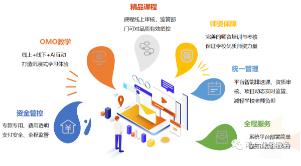 “鴻合課后服務解決方案”聚焦兩會熱點、民生工程,突破課程“質/量”欠佳、教師資源稀缺、落地實施復雜、政府監管困難等難點,對課后服務提出建設性解決方案。方案從平臺、課程、師資、服務四維著手,貼合“五育并舉”育人理念,實現課程資質審核、排選課、師資調配、備授課、考勤、評價反饋、數據看板等全業務流程管理。集精品課程、師資保障、互動反饋、高效管理等多方優勢,為學生打造豐富多彩的課程體驗,為家長排憂解難,為學校提供一站式全方位的課后服務解決方案,為政府落實課后服務的“民生工程”提供平臺和服務。