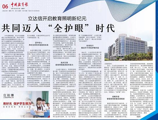 中國(guó)教育報(bào)專題報(bào)道:立達(dá)信開啟教育照明新紀(jì)元 共同邁入“全護(hù)眼”時(shí)代