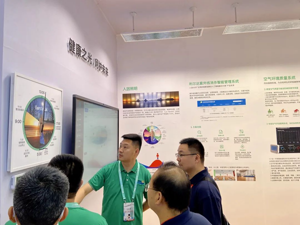 現(xiàn)場(chǎng)搭建了“微縮版”智慧教室,讓參觀者可以更直觀、沉浸式地體驗(yàn)。以物聯(lián)網(wǎng)技術(shù)賦能照明燈具為主,以“高精度光感傳感器+恒照度燈具”組成智慧照明系統(tǒng),對(duì)教室光環(huán)境數(shù)據(jù)自動(dòng)監(jiān)測(cè)、調(diào)控,使教室光照度隨環(huán)境亮度變化而自動(dòng)調(diào)整。教室內(nèi)的“人體節(jié)律鐘”實(shí)力圈粉,吸引了不少觀眾上手體驗(yàn)“智能調(diào)光”。