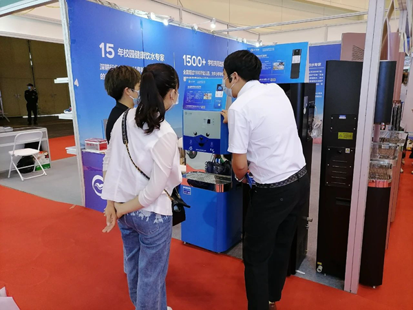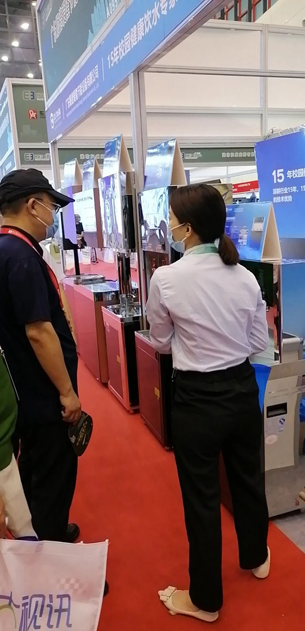 除了靚麗的飲水設備之外,艾龍的校園智慧飲水解決方案更是現場的一大重頭戲,不少現場觀眾饒有興致地前來了解:云物聯系統、在線水質監測……對于他們的問題,現場的艾龍精英們一一作答,為大家充分解惑。