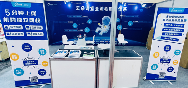 云朵課堂攜全套在線教育解決方案亮相展會現場,現場為參展人員充分展示網校搭建、直播課程、錄播課程、面授課程、題庫、問答社區、機構運營管理、數據分析等多方面的產品服務,打造完整的產品矩陣,用技術創新教育,推進促成校企教育裝備應用合作,拓展新市場。