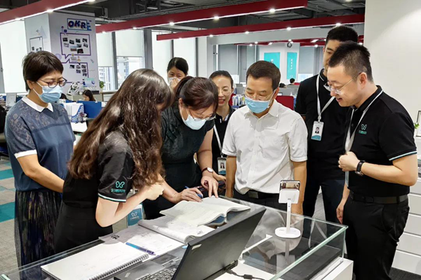 總裁田雪松對(duì)海珠區(qū)人大常委會(huì)副主任方錦群一行的到來(lái)表示誠(chéng)摯歡迎,并帶領(lǐng)大家參觀了云蝶智慧教育展示區(qū),深度體驗(yàn)了紙筆交互系統(tǒng)在課堂中的應(yīng)用場(chǎng)景。