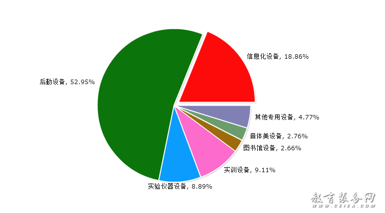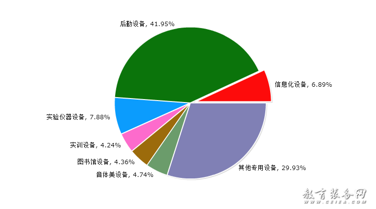 根據(jù)對教育裝備細(xì)分的歸納,教育裝備網(wǎng)將教育裝備具體劃分為七大類,即信息化設(shè)備(含智能平板、錄播系統(tǒng)、智慧黑板等),后勤設(shè)備(含校園基建、安防設(shè)備、食堂設(shè)備、課桌椅等),實(shí)驗(yàn)儀器設(shè)備(含儀器儀表、實(shí)驗(yàn)室平臺等),實(shí)訓(xùn)設(shè)備(含實(shí)訓(xùn)系統(tǒng)、實(shí)訓(xùn)設(shè)施等),圖書館設(shè)備(含借還系統(tǒng)、微型圖書館等),音體美設(shè)備(含樂器、體育設(shè)施、美術(shù)用品等),其他專用設(shè)備(含創(chuàng)客教育、心理健康特教設(shè)備等)。