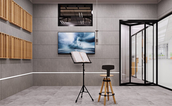 1、錄音棚聲學設計,使用材料迎合行業要求,使用綠色環保、阻燃的材料,為了保證聲學指標,所選用的材料具有較好的裝飾和聲學吸聲特性。