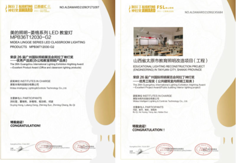 美的照明憑借多年積累的照明技術,結合多場景智能交互經驗,針對市場及用戶的需求,專研產品技術,為校園提供一站式的教育照明解決方案。迄今,獲得優秀產品獎的美的照明菱格系列LED教室燈,已進駐上百所校園,為各地校園添光溢彩。