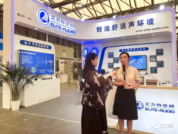 這場熱鬧的盛會上,艾力特音頻副總經理陳紅梅女士也接受了采訪,在現(xiàn)場為大家介紹了專業(yè)的聲學材料資源共享平臺Ecouster 聲學空間設計師。