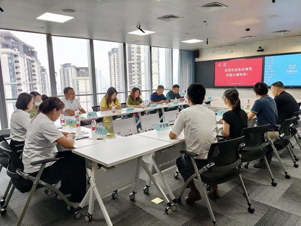 7月21日,甘肅省臨夏州教育局副局長汪梅芳,臨夏州教育局職成科科長陳艷華,臨夏國強職業技術學校干部一行十人到訪云蝶科技總部參觀交流,云蝶科技副總裁陳天博士,副總裁趙清,營銷副總經理沈勇等共同出席座談。