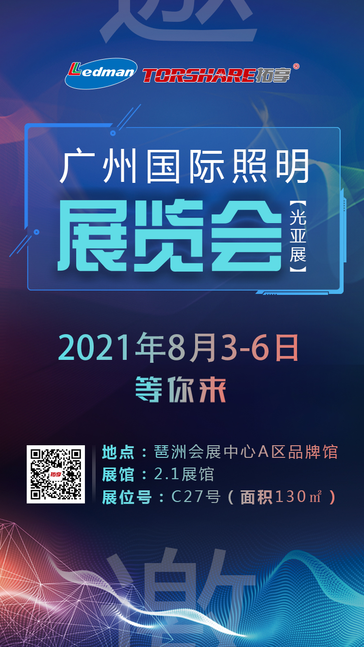 8月3-6日,拓享科技邀您一起參加,2021第26屆廣州國(guó)際照明展覽會(huì)(光亞展)!