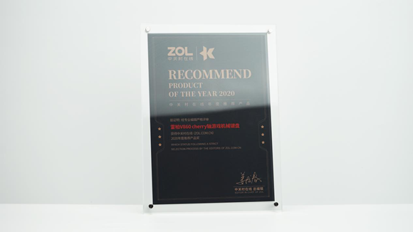 ▲ZOL中關(guān)村在線2020中關(guān)村在線年度推薦產(chǎn)品:雷柏V860cherry軸游戲機械鍵盤