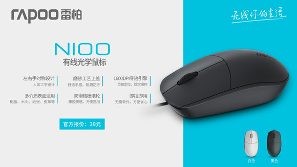 輕便舒適——雷柏N100有線(xiàn)光學(xué)鼠標(biāo)上市
