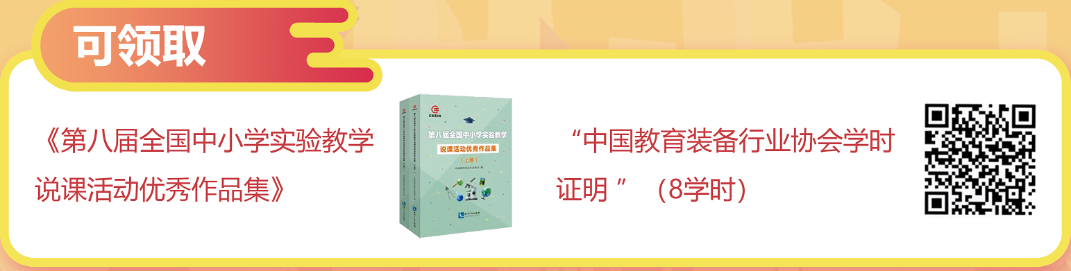 值得注意的是,參加論壇的老師不僅可以免費(fèi)領(lǐng)取《第八屆全國(guó)中小學(xué)實(shí)驗(yàn)教學(xué)說(shuō)課活動(dòng)優(yōu)秀作品集》(收錄了說(shuō)課活動(dòng)優(yōu)秀作品),還可以自行申領(lǐng)“中國(guó)教育裝備行業(yè)協(xié)會(huì)學(xué)時(shí)證明”,滿(mǎn)足繼續(xù)教育、研修提升等需求。