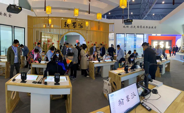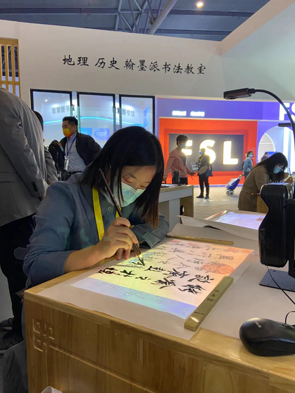 翰墨派云書法教室遵循教育部《中小學(xué)書法教育指導(dǎo)綱要》,是集數(shù)字化教育技術(shù)最新成果之大成,為學(xué)校打造新一代互動(dòng)體驗(yàn)書法教室。翰墨派強(qiáng)勢來襲,一改古典美的風(fēng)范,本次亮相新中式建筑風(fēng)格。搭配小橋流水人家,儼然成為成都展的網(wǎng)紅展位,吸引眾多美女賓客打卡臨摹。