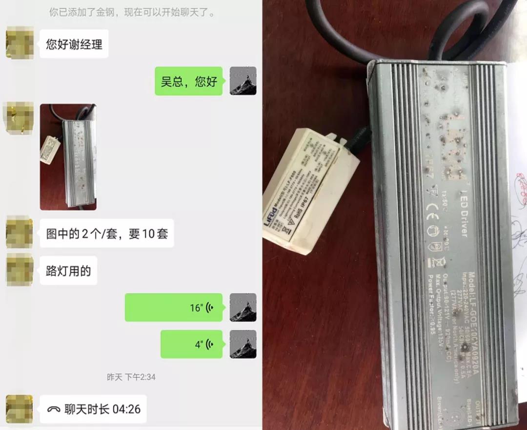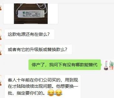 聊天記錄為業務同事反饋,聊天中提到的為萊福德LF-G418B系列產品,了解萊福德的客戶朋友應該從命名就能看出,該產品是萊福德很早以前的LED日光燈、平板燈外置電源,該產品質保年限為3年。