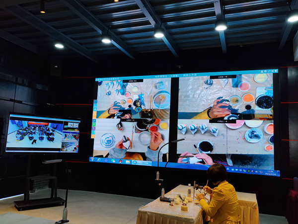 在上課過程,教師調取學生對陶瓷的上色過程,通過設備,教師能夠看到學生的細微操作,及時作出指導和修正,幫助學生更好掌握傳統技藝。而學生也可以及時提問,解決在技藝學習中的疑問。